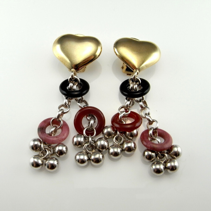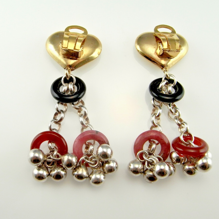 1980s Natural Untreated Gems Tassel Drop Clip On Earrings! WOW! Italian Jewelry
