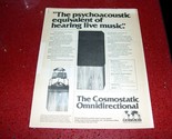 1981 COSMOSTATIC OMNIDIRECTIONAL SPEAKER SPEC SHEET. INCLUDES REPRINT TEST REPORT FROM AUDIO TRADE NEWS MARCH 1981 AND DEALER LIST. UNITED STATES ONLY PLEASE. FREE SHIPPING. COMES FROM SMOKE AND PET FREE HOME. NEAR MINT CONDITION.