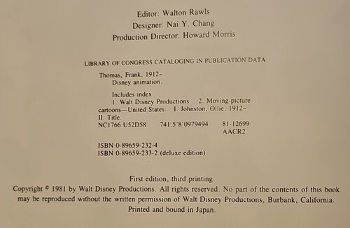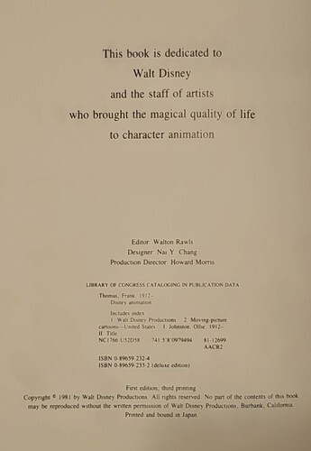 - 1981 Disney Animation The Illusion of Life First Deluxe Edition Third Print