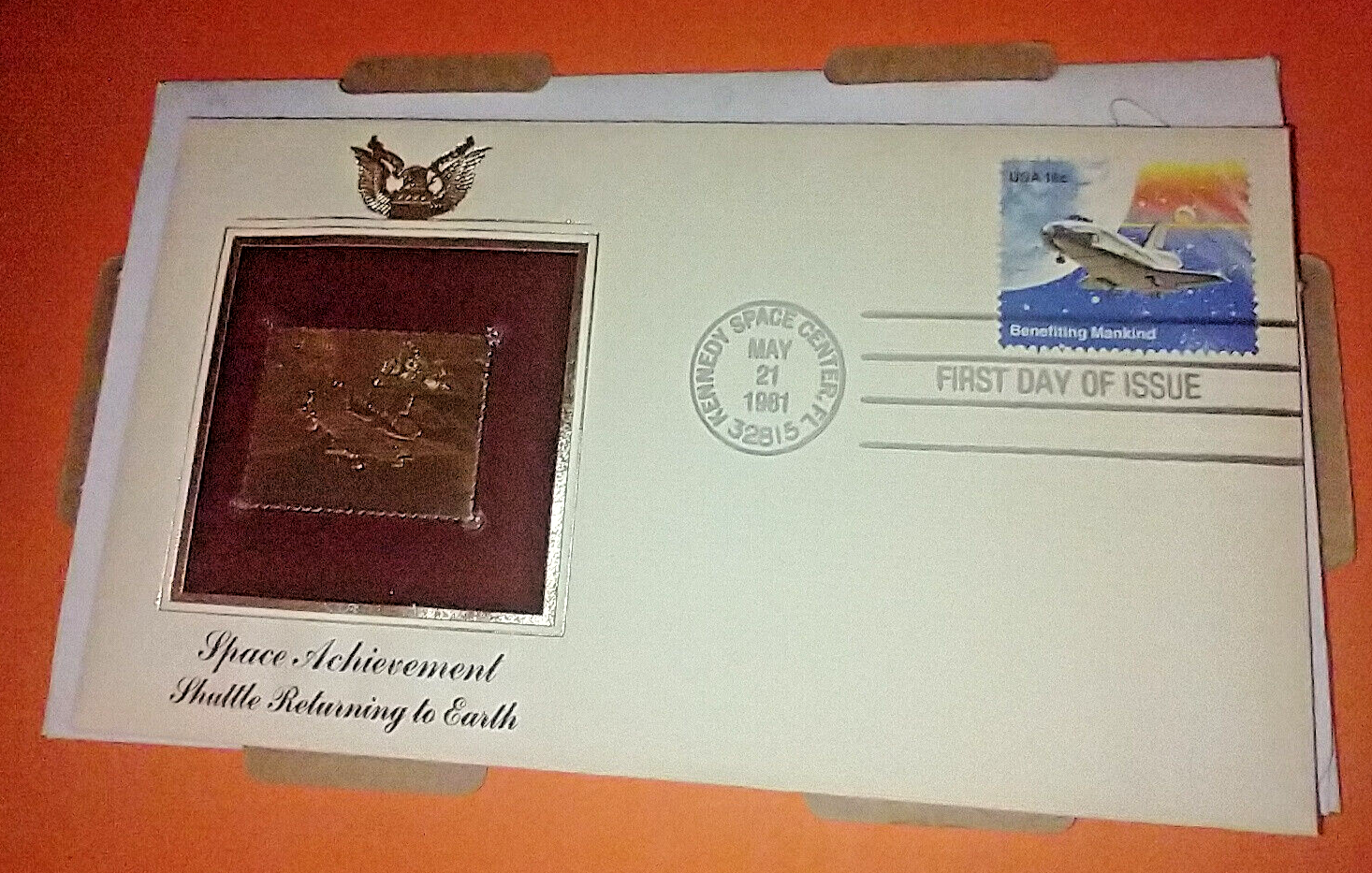 - 1981 SPACE SHUTTLE STAMP FIRST DAY ISSUE, GOLD STAMP REPLICA BENEFITTING MANKIND