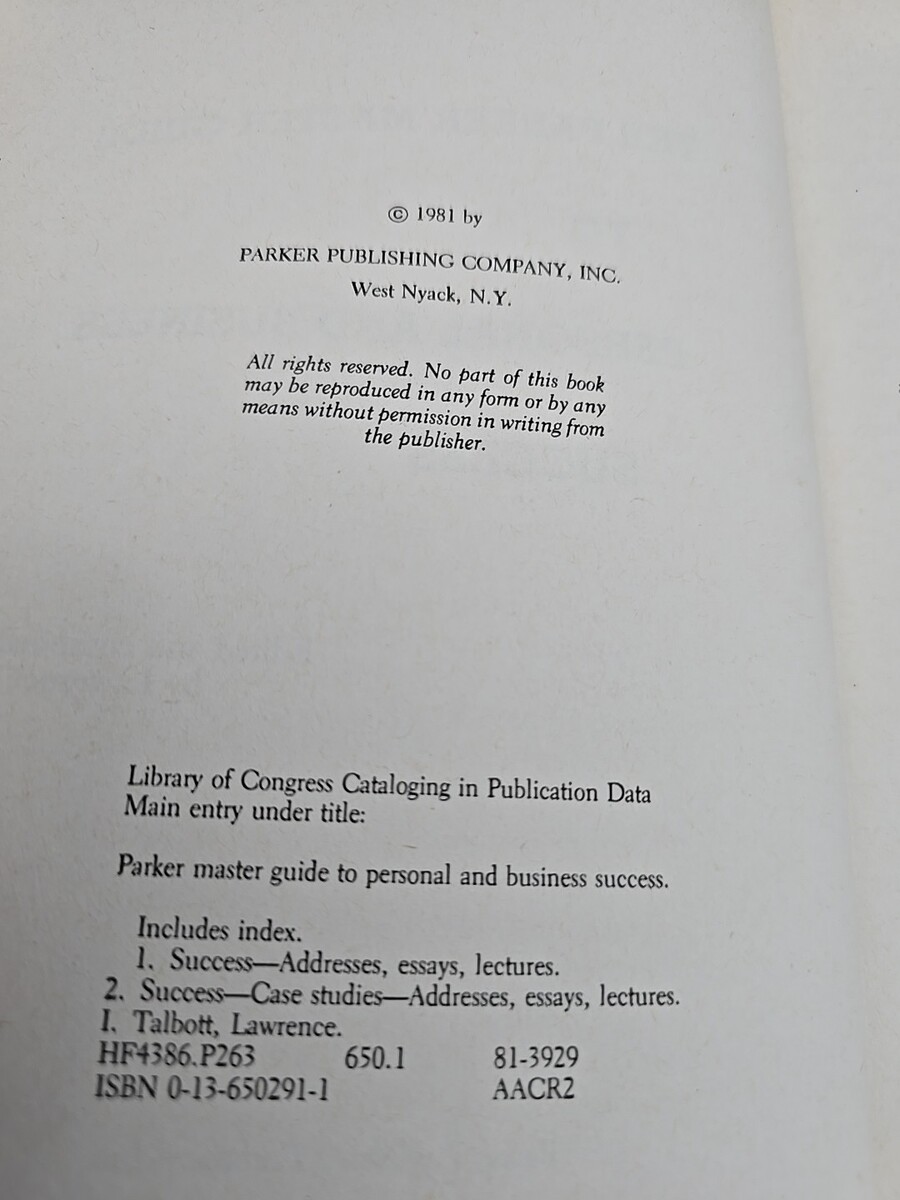 - 1981 The Parker Master Guide To Personal Business Success Lawrence Talbott HCDJ