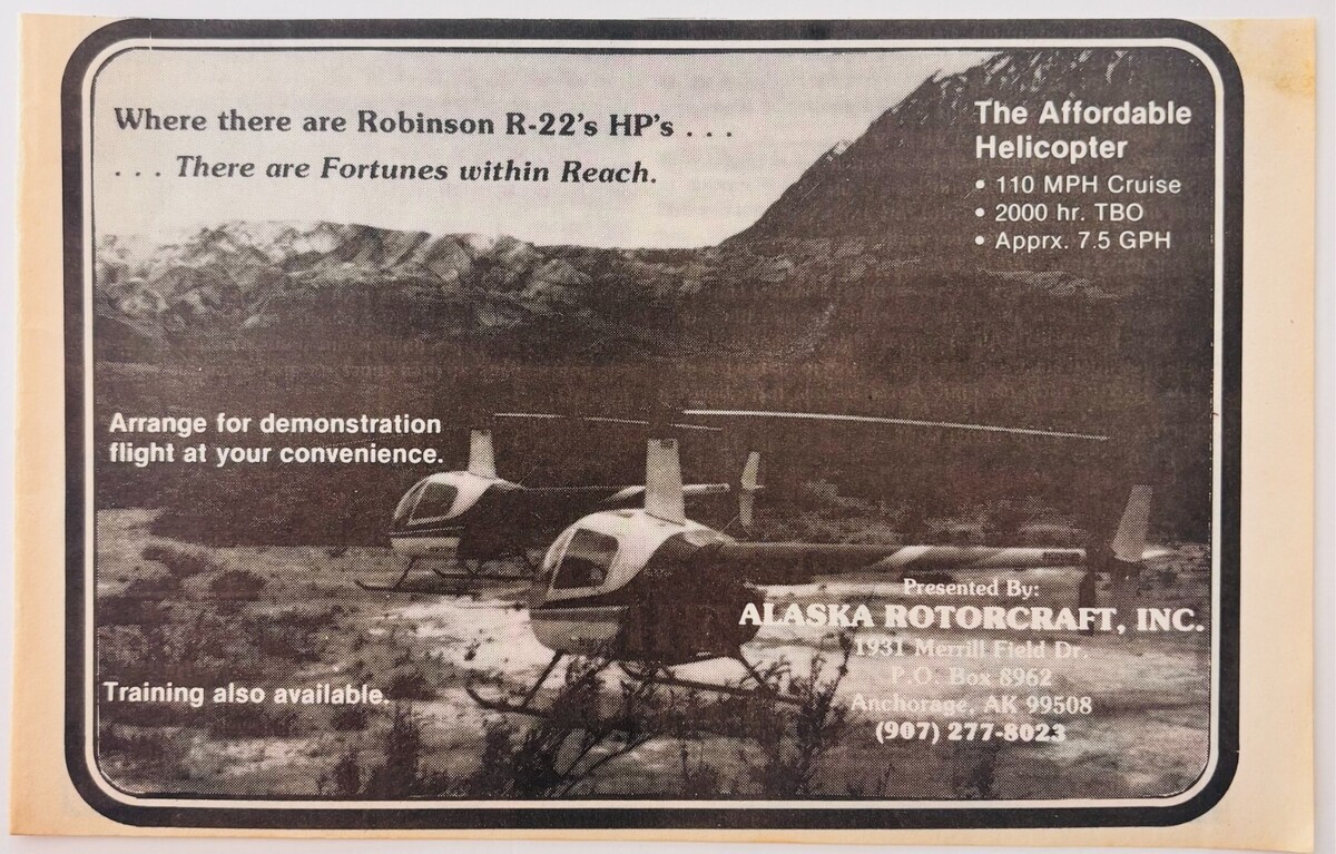 1983 Alaska Rotorcraft Anchorage Advertisement Robinson R-22's HP Aviation F15X