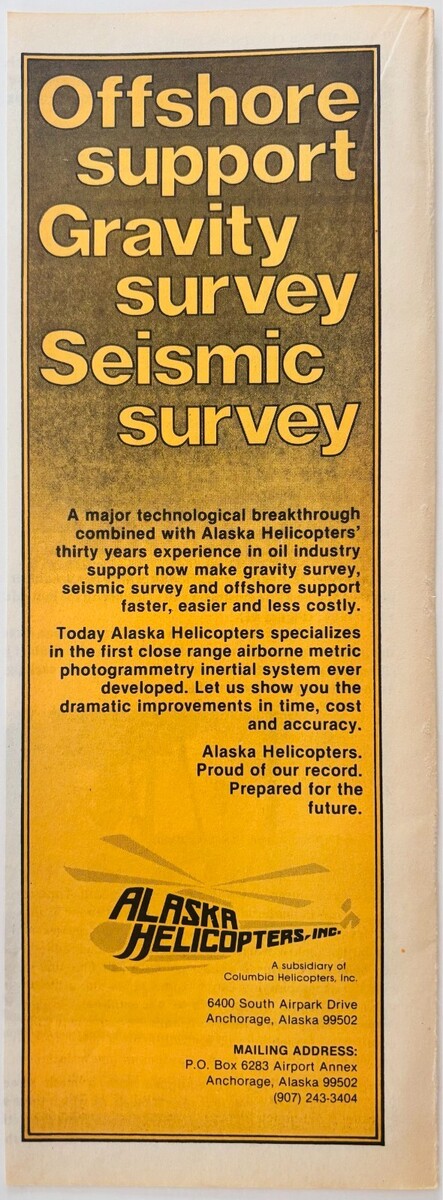 - 1983 Alaskan Helicopters Advertisement Gravity Seismic Survey Vintage F15X