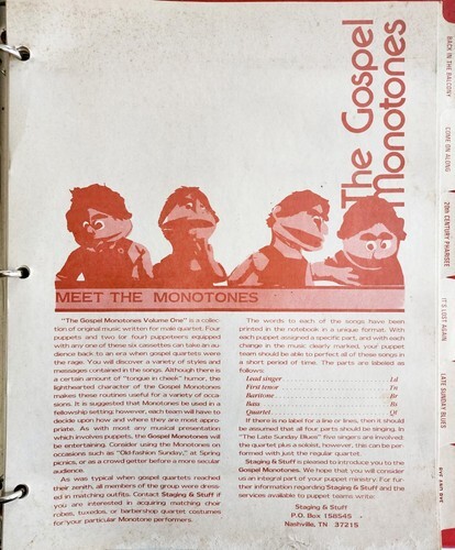 - 1983 The Gospel Monotones Theater Music Binder 6 Cassettes And Script WHBS