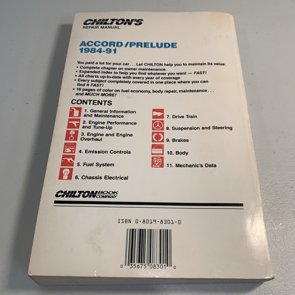 - 1984-1991 Honda Accord Prelude Chilton's Repair Manual #8301 Book