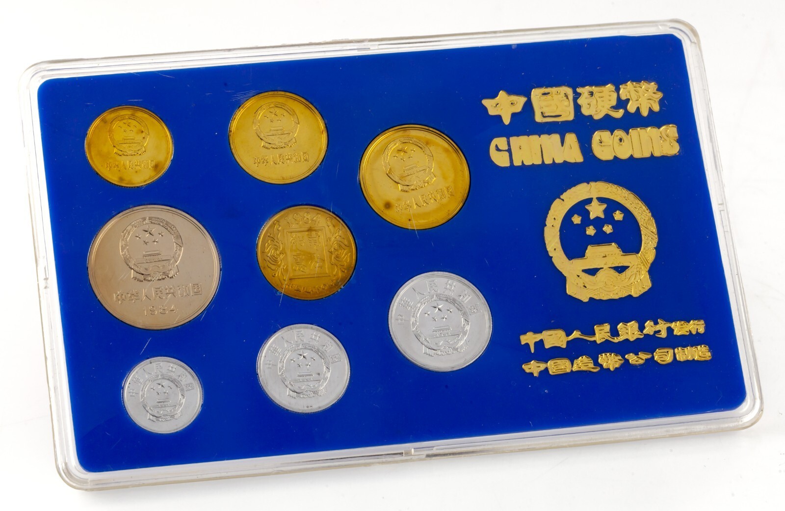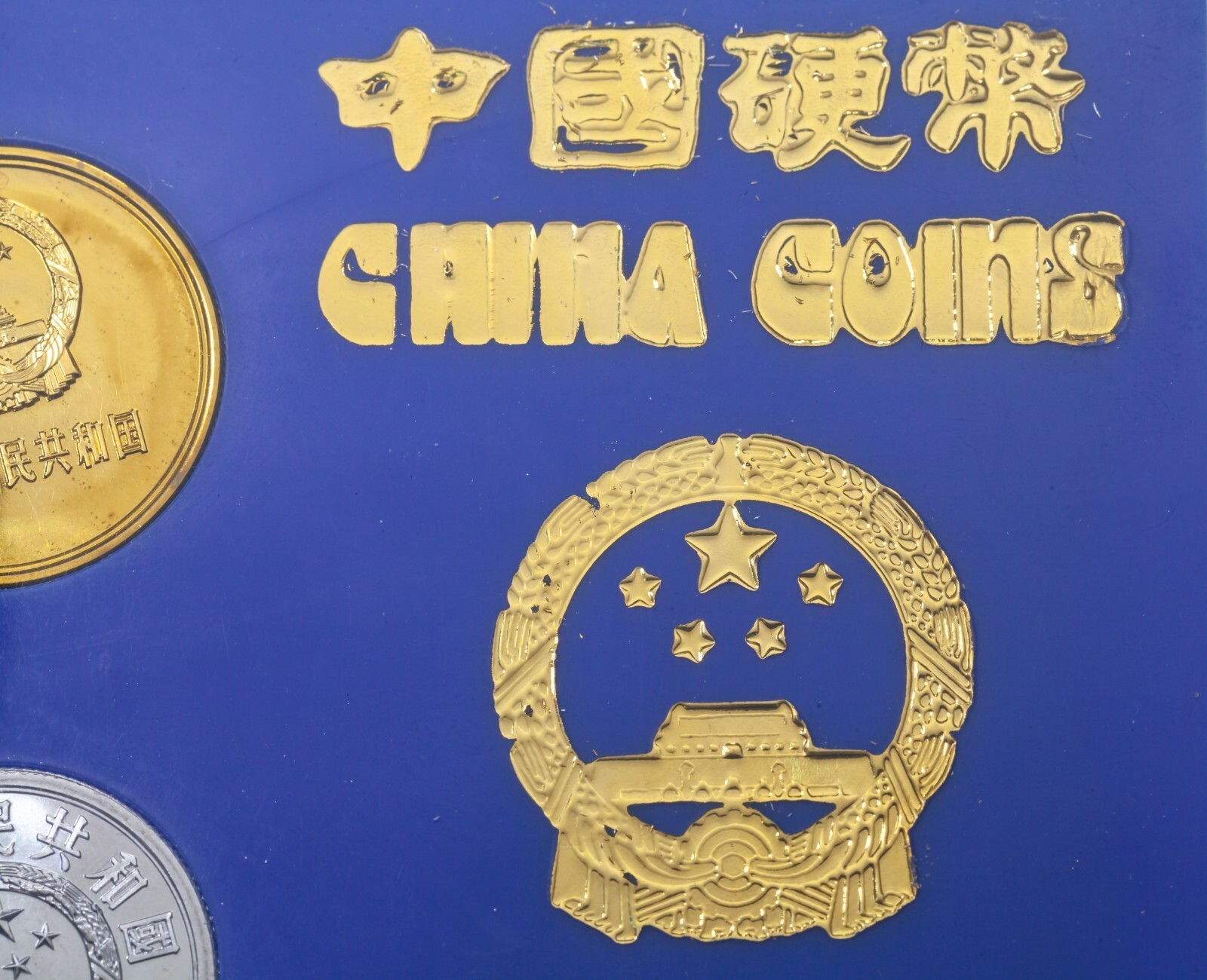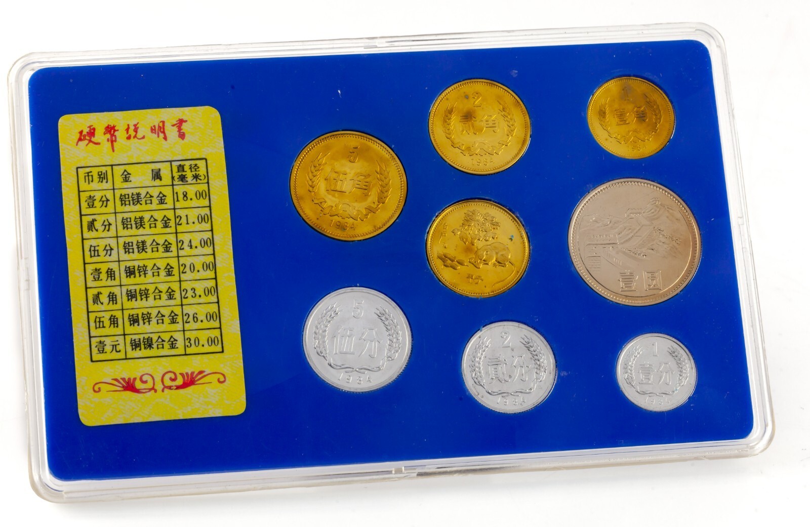 Include l'alluminio 1, 2 e 5 fen; Bronzo 1, 2 e 5 Jiao; uno yuan di rame-nichel; e una medaglia di bronzo.