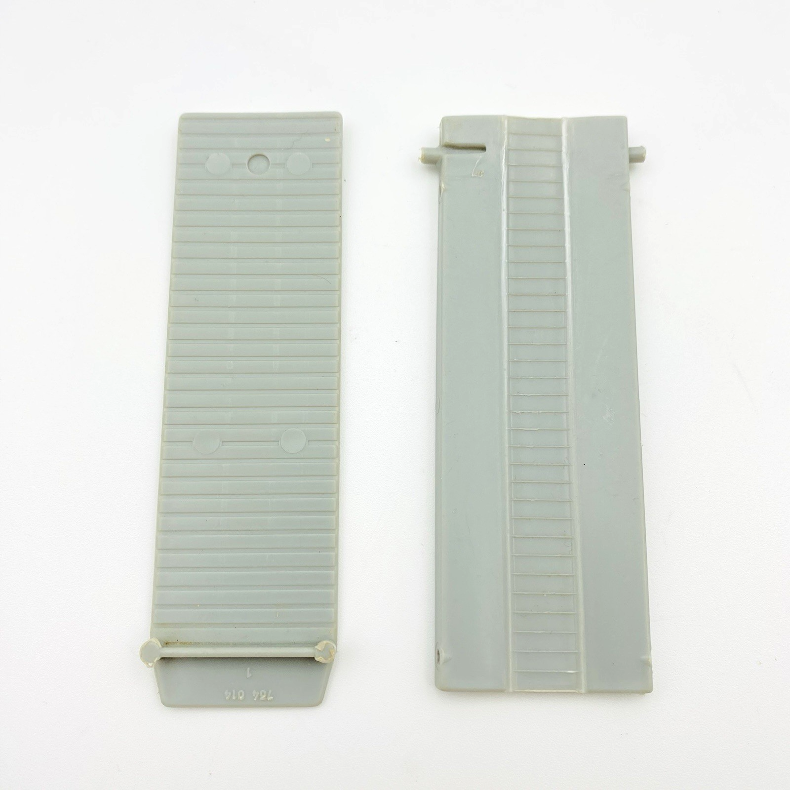 The 1984 Star Wars Imperial Shuttle Ramp is a vintage Kenner action figure accessory from Episode IV - A New Hope. This replacement part, made of PVC/plastic, features an adjustable ramp for the Imperial Shuttle. As part of the original 1984 release, this first edition piece is a collectible item for fans of the Star Wars franchise, specifically Return of the Jedi. With a gray color scheme and a scale of 1:18, this unboxed ramp is a must-have for anyone looking to complete their shuttle. Piece is in good condition for age with some light to moderate play wear present. Set features unbroken pegs and ramp slides up and down nicely. Please see pictures for more details. Be sure to check out my store for more. Add 3 or more items to cart and save 20%! Thanks for viewing.