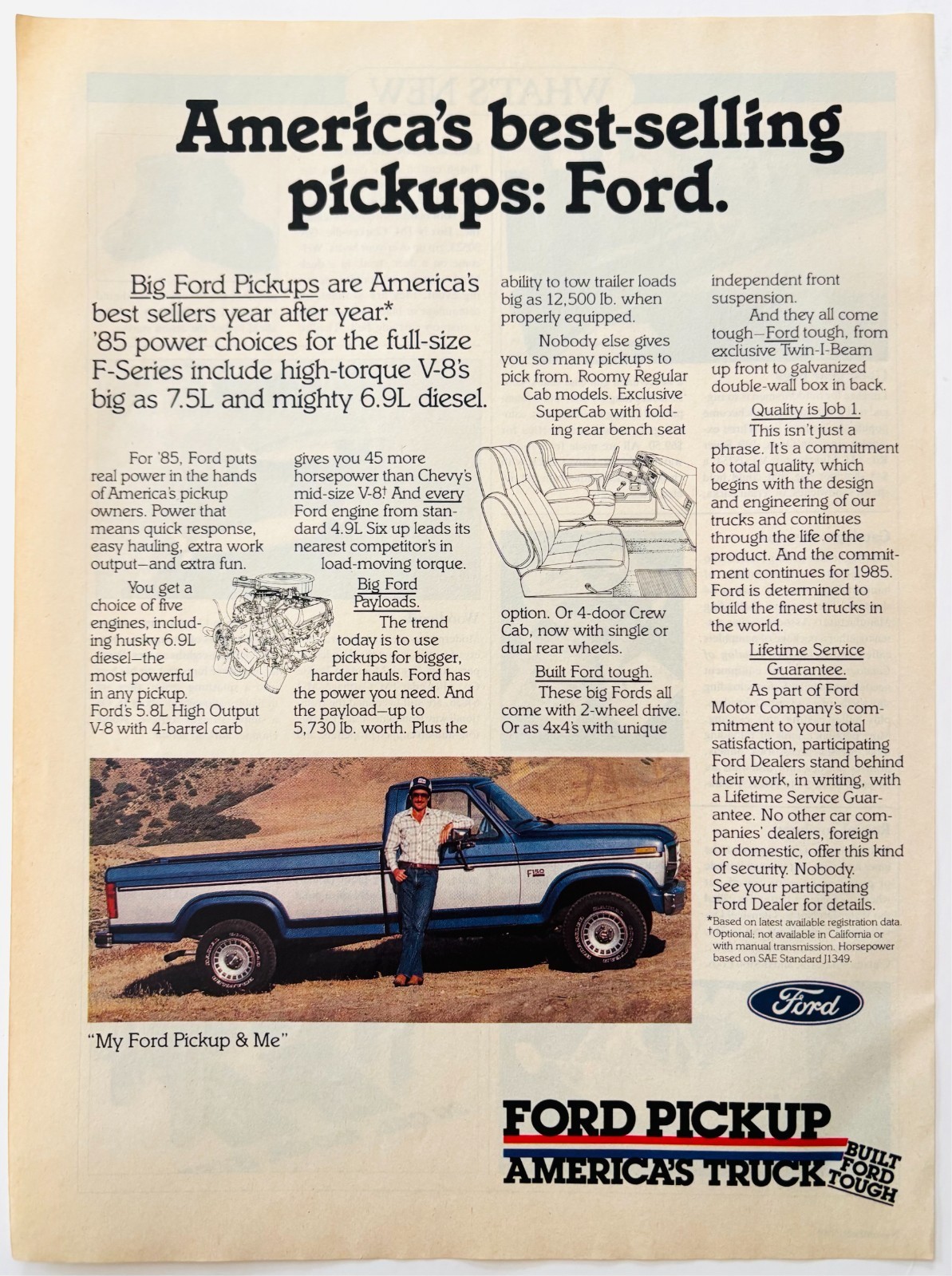 1985 Ford Pickup Trucks F150 Advertisement Vintage Automobilia America DWU17F