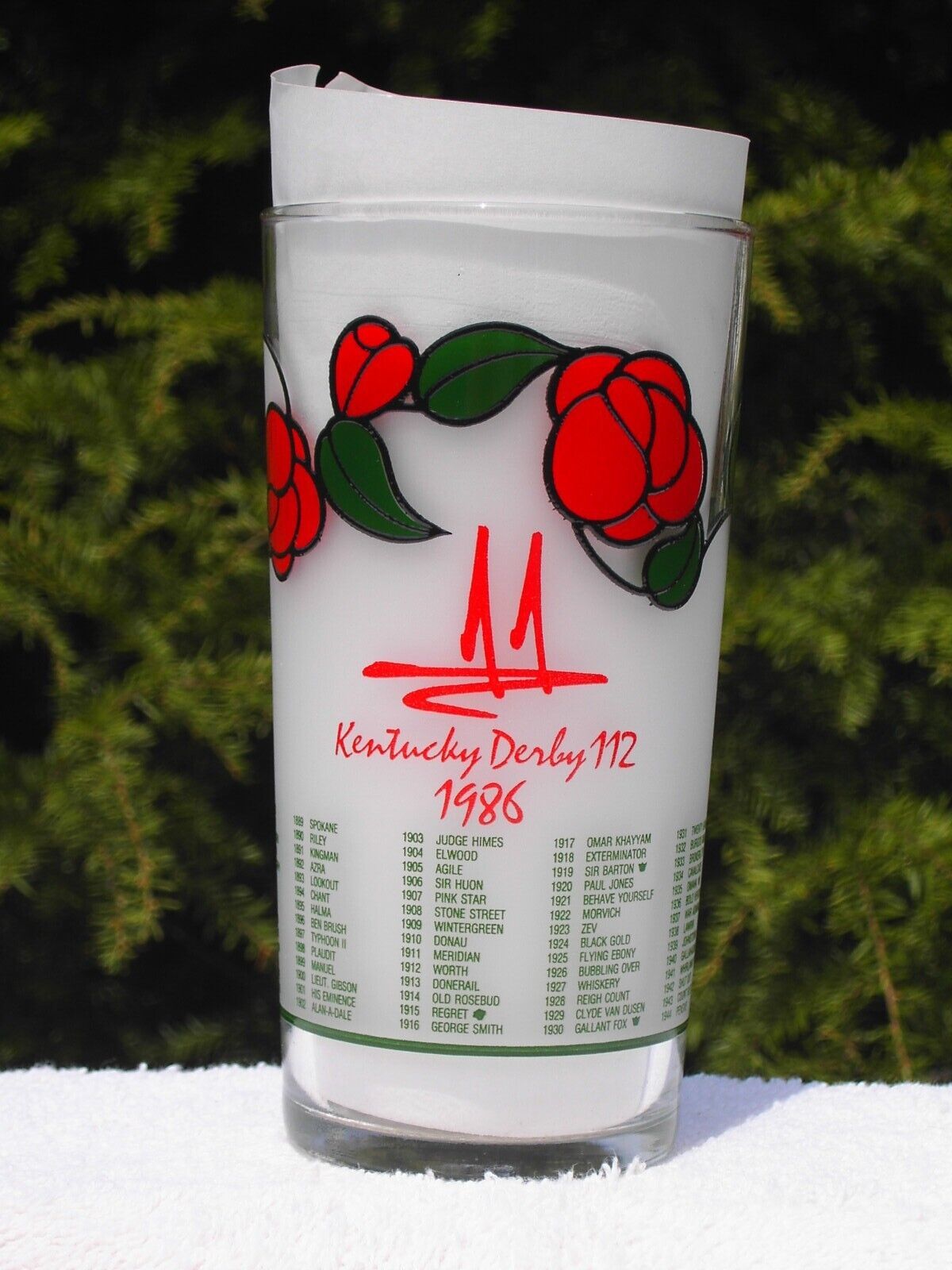 This is the Official 1986 - 112th Kentucky Derby glass in NEW, UNUSED, MINT Condition. Domestic postage cost will be determined by the Zip Code of the Buyer in the U.S.A. International postage cost will be determined by the Country of the Buyer.