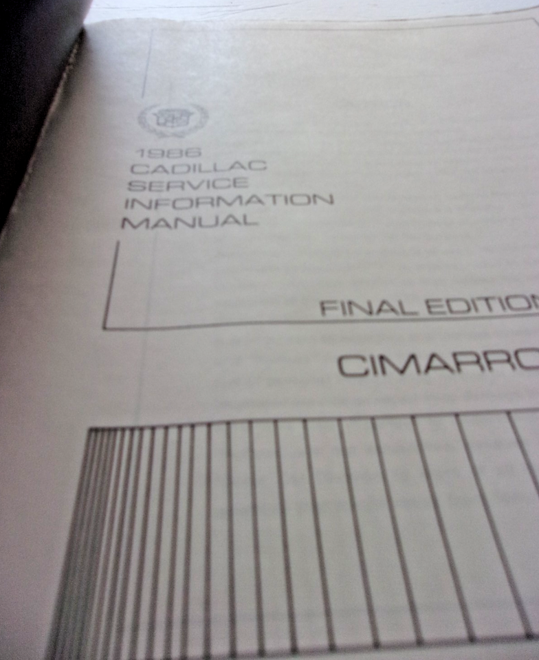 - 1986 Cadillac Service Information Manual Final Edition Cimarron