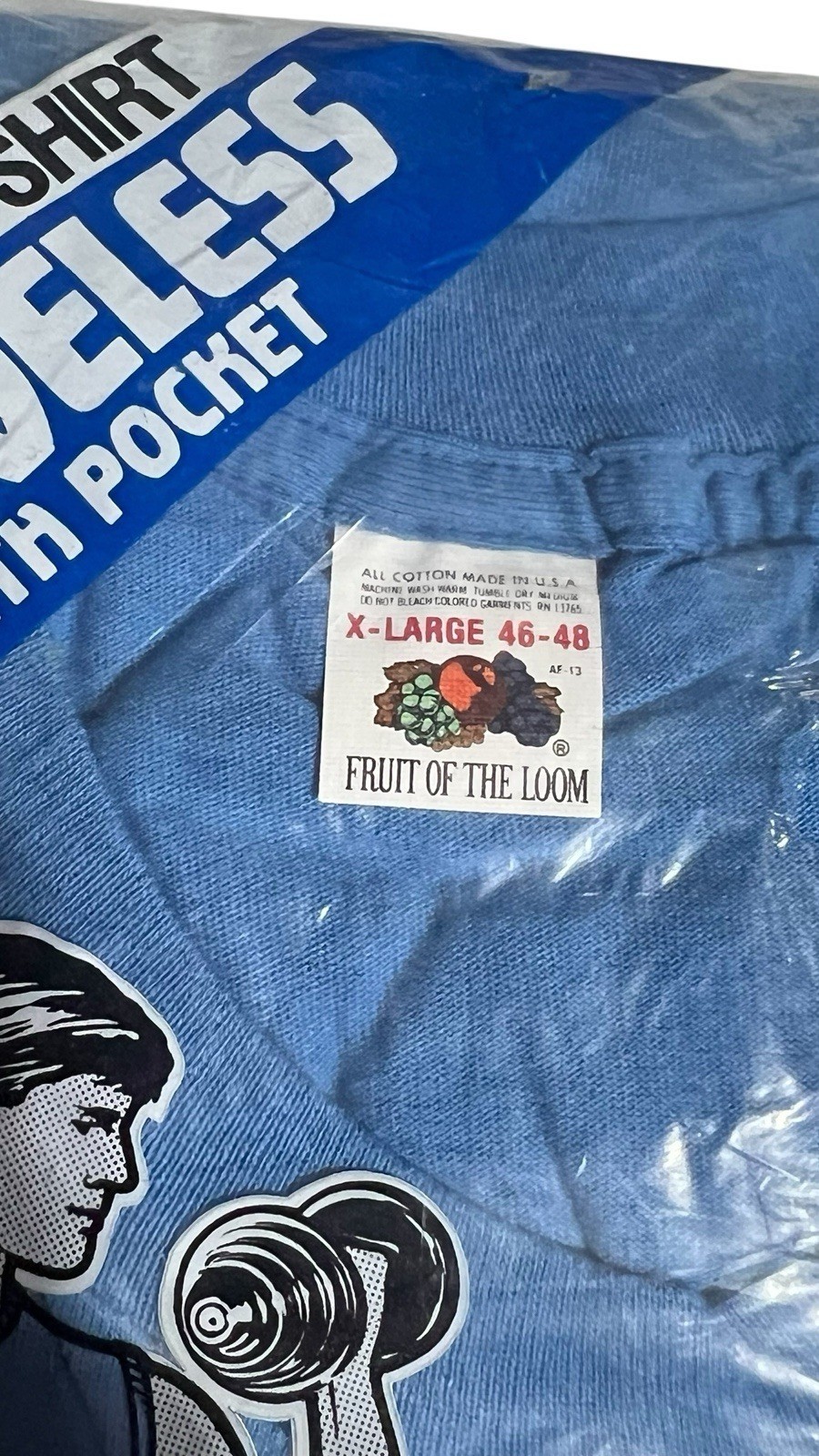 - 1986 Fruit of the Loom Sleeveless Pocket T Shirt Size XL 46-48 Blue Vintage NEW