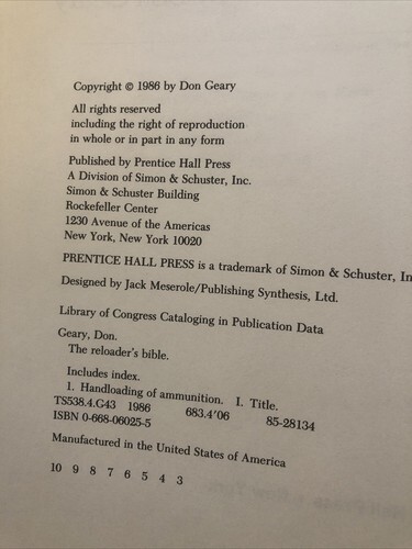1986 The Reloaders Bible, the complete guide to making Ammunition at Home, By Don Geary, Hardcover
