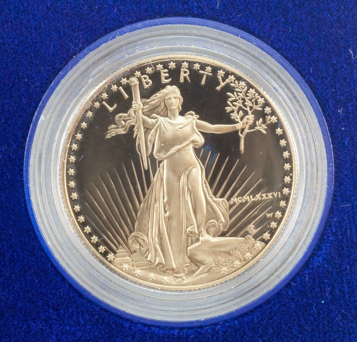 - 1986-W G $50 Oro American Eagle Prueba 1 Oz. Moneda W/ Ogp (Caja, COA, Funda )