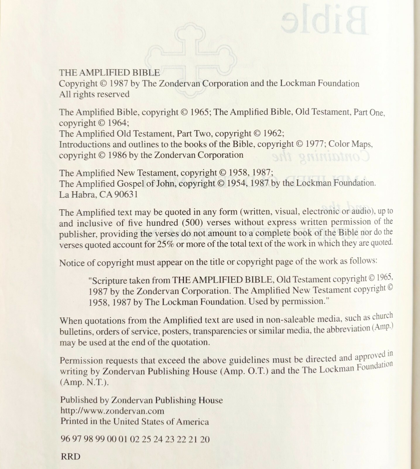 - 1987 Amplified Bible Zondervan Complete Old New Testament Red HC HBS