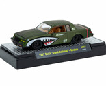 Introducing the iconic 1987 Buick Grand National in a striking Custom Green Metallic finish, recreated as a premium 1/64 scale diecast by M2 Machines. This limited edition model features legendary Shark Mouth Graphics titled "Sgt. G Body" and is restricted to 6,600 pieces worldwide, making it a standout addition for serious collectors.