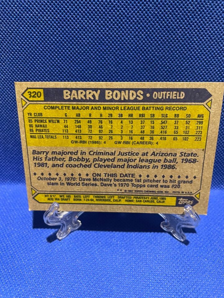 Barry Bonds RC 320 1987 Topps Card