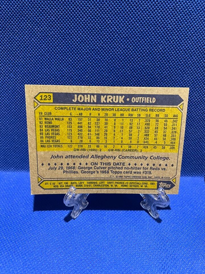 1987 Topps - Tiffany #123 John Kruk (RC)