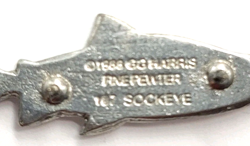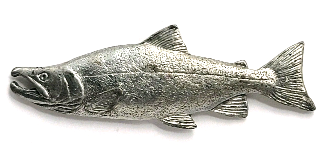 - 1988 GG Harris Sockeye Salmon Lapel Pin Pewter Fish Fishing Wildlife Jewelry VTG
