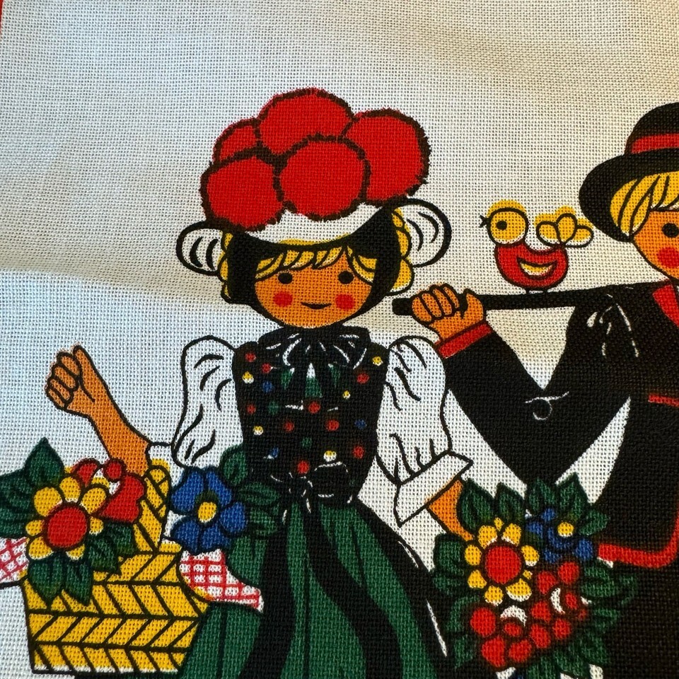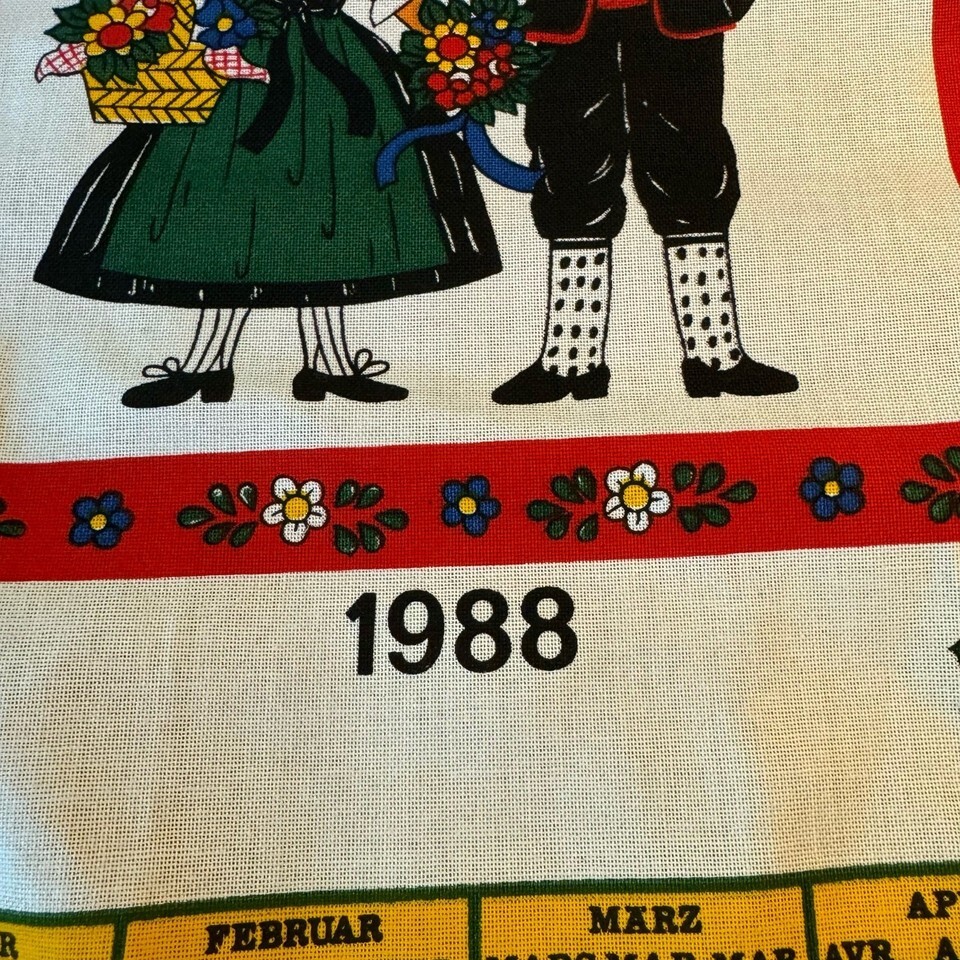 1988 German Boy Girl Traditional Costumes Cloth Wall Calendar Flowers Cotton