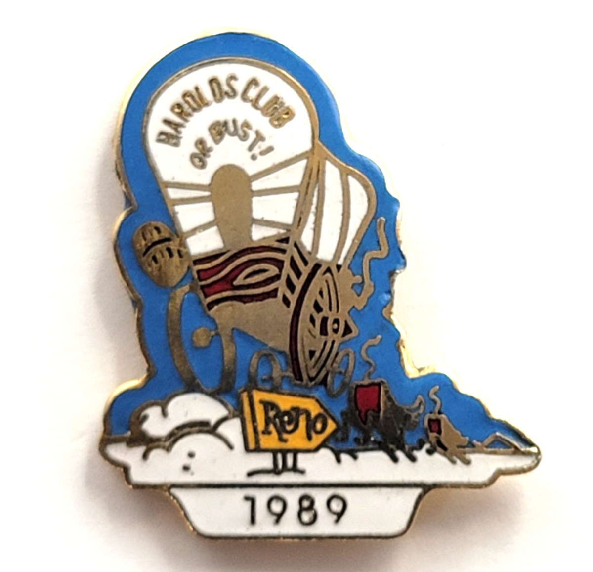 - 1989 Harold’s Club Reno Covered Wagon Pin Casino Western Theme Nevada Souvenir