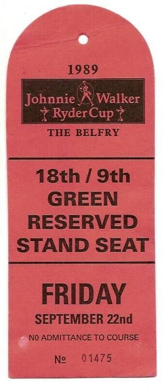 - 1989 Ryder Cup Golf Ticket 1st Tournament Round Friday September 22nd Europe Win