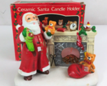 - 1990 Ceramic Santa By The Fireplace With Toy Sack 4.75" Votive Candle Holder