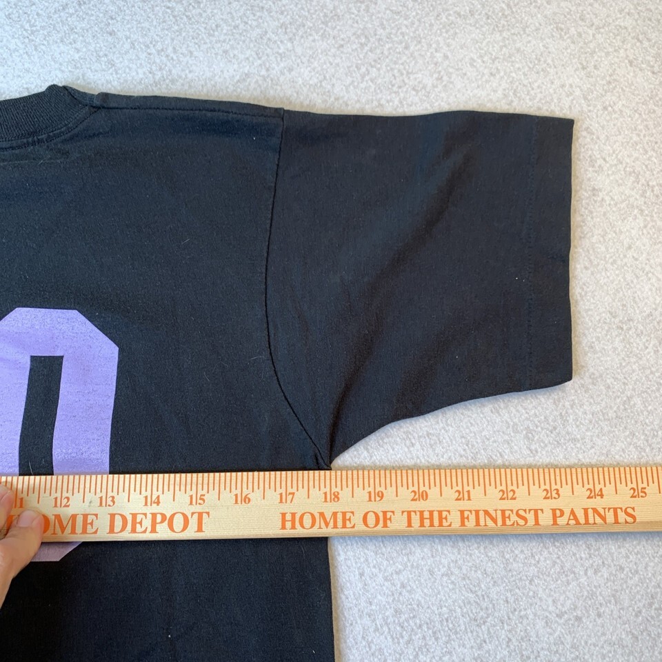 The product is a 1990 Vintage T-Shirt in size medium, featuring a classic crew neck and short sleeves. Made of cotton material in a black color, this regular fit t-shirt is machine washable and perfect for the seasons of summer, fall, and spring. The shirt is adorned with the brand "Screen Stars Best" and a star theme, making it a stylish and nostalgic addition to any man's wardrobe. Ideal for casual wear, this vintage t-shirt is a timeless piece that captures the essence of the 1990s era.