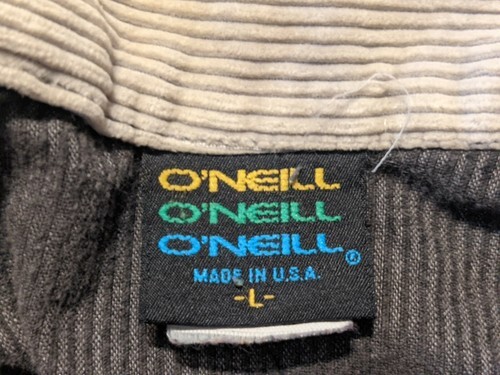 Zum Verkauf steht eine gebrauchte, nicht missbrauchte Vintage O'Neill Corduroy Button Langarmjacke aus den 1990er Jahren in Schwarz, Grau, L USA.