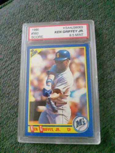 This is a 1990 Score sports trading card featuring baseball legend Ken Griffey Jr, available in a graded condition of 8.5 by K Sportscard Authentication (KSA). The certification number is ksa4j38063.