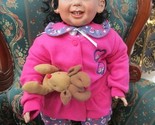 FAYZAH SPANOS DOLL 1993 "TURUKLEE DEER" 25" SIGNED NIB CERTIFICATES WITH A DEER DOLL, HAIR MAY NEED A MAKE UP, THERE ARE SOME AGE STAINS NOTHING SERIOUS IN CLOTHING, NEW, FROM A CLOSING STORE, SHOWN FEW TIMES MAYBE, I FOUND A HAIRLINE IN MOUTH, DIFFICULT TO SEE BUT IT IS THERE, NOTHING SERIOUS EITHER, SHE IS DRESSED IN LAYERS OF BABY CLOTHING. [A4WOODRACK]