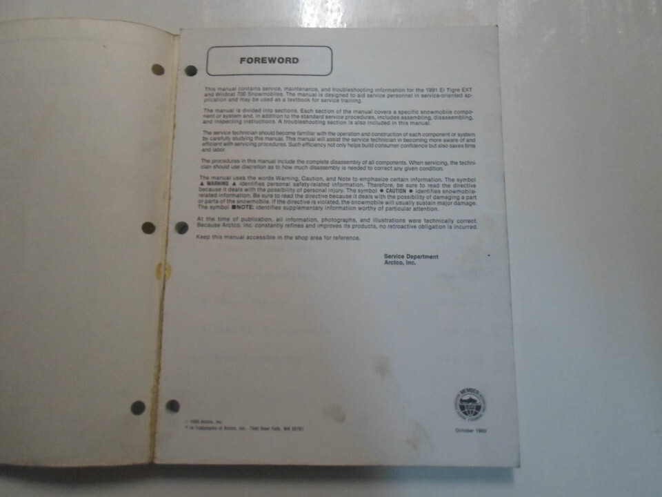 - 1991 Arctic Cat Wildcat 700 El Tigre Ext Service Repair Workshop Manual P/W- ...