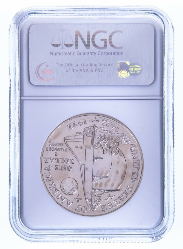 - 1992-D Columbus Commemorative Silver $1 Graded by NGC as MS-69