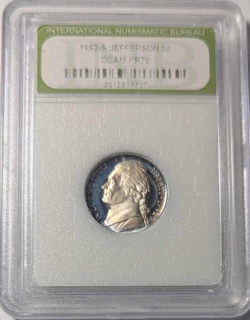 Obverse: The portrait of Thomas Jefferson, the 3rd President of the U.S. from 1801-1809. IN GOD WE TRUST. LIBERTY. 1992-S