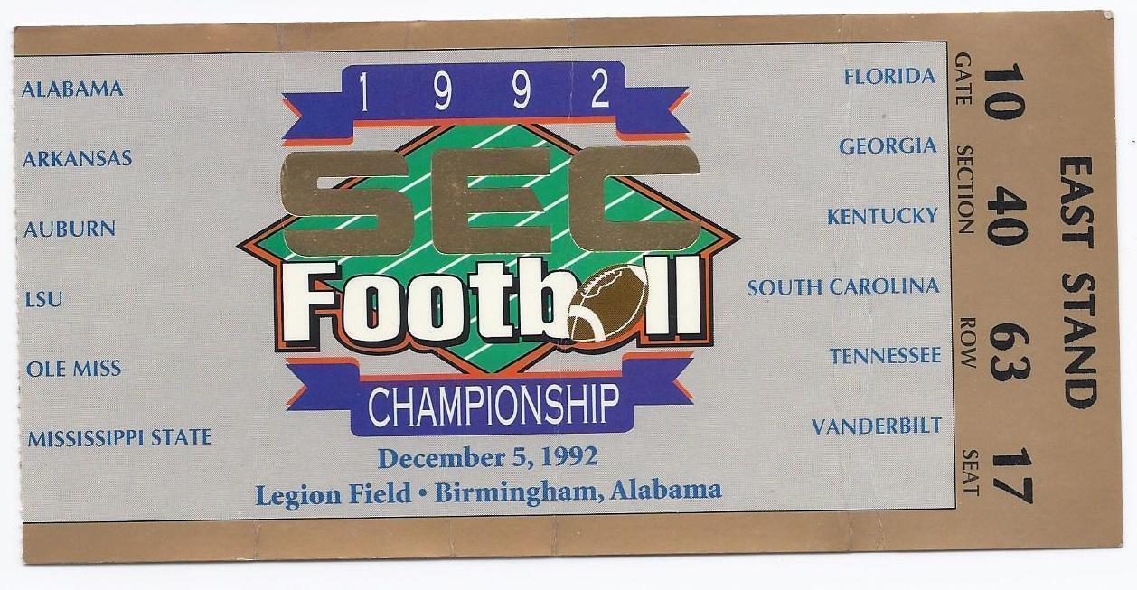 - 1992 SEC Championship Game ticket stub Florida Alabama
