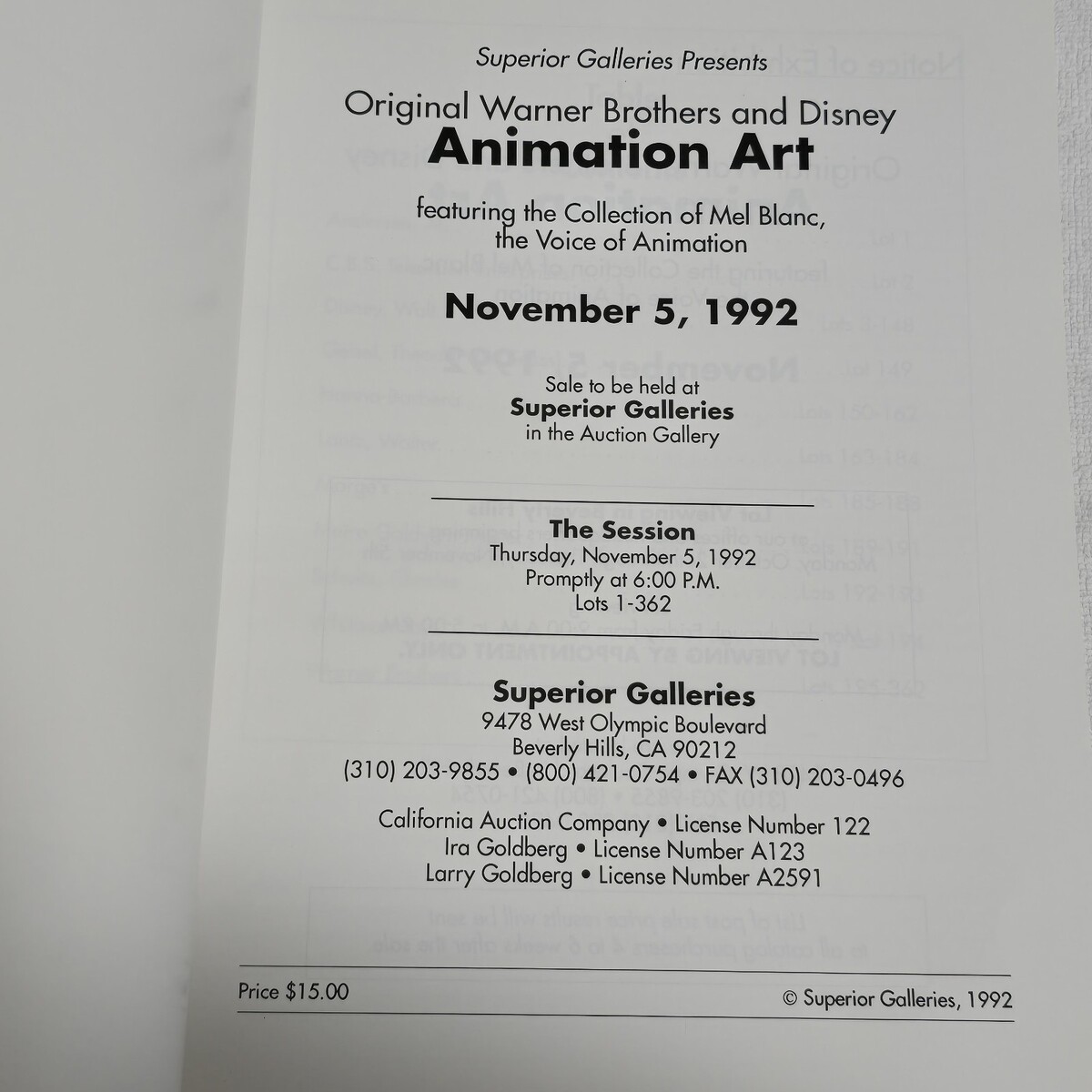 - 1992 Warner Bros Disney Animation Art Auction Catalog Mel Blanc Collection