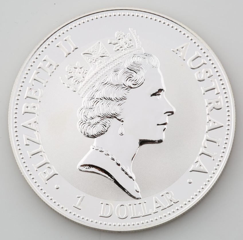 - 1993 Australian Kookaburra 1 oz. 999 Silver BU Coin Queen Elizabeth II