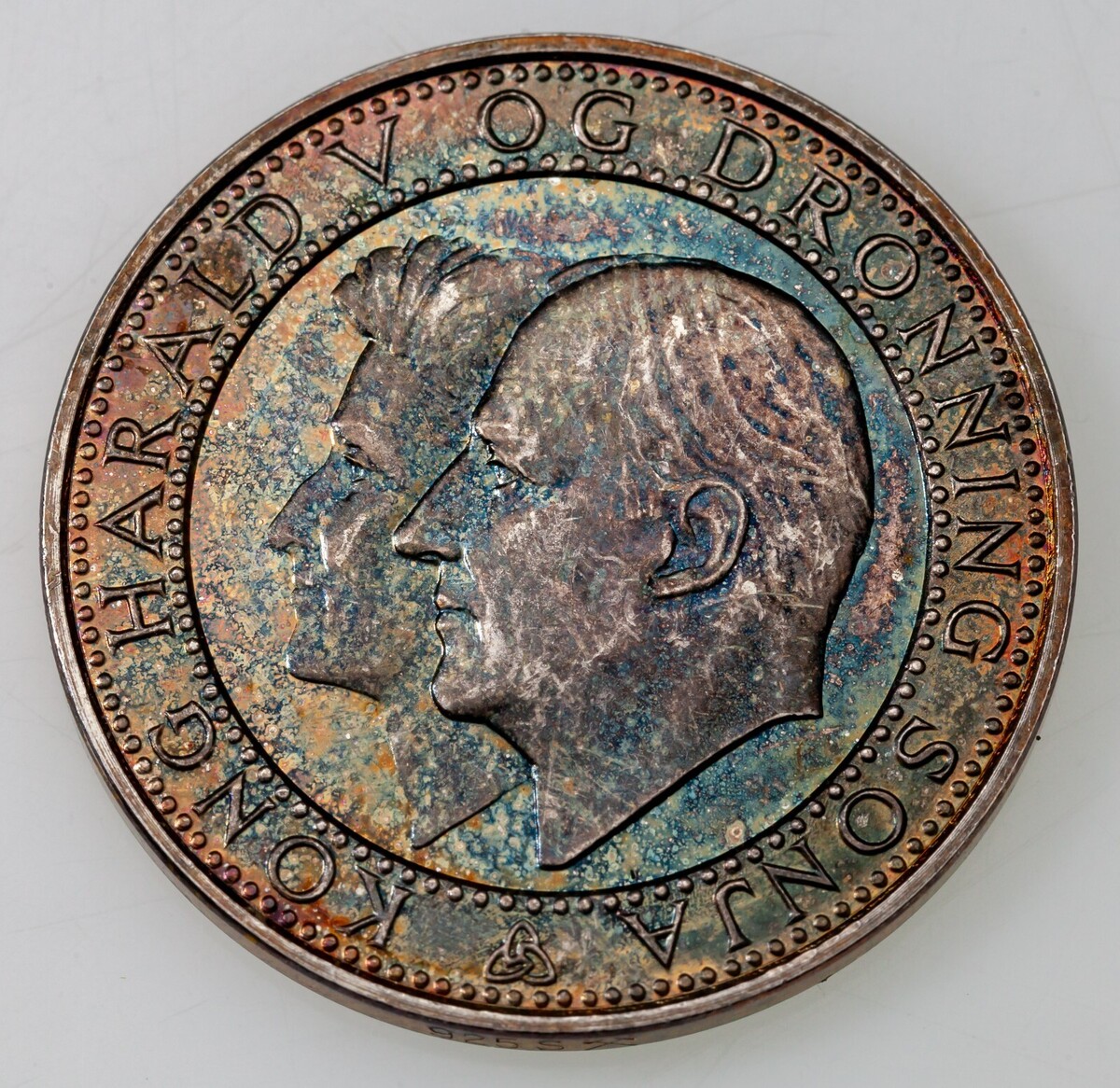 - 1993 King Harald & Queen Sonja Norway 25th Anniversary Sterling Silver Medal AU