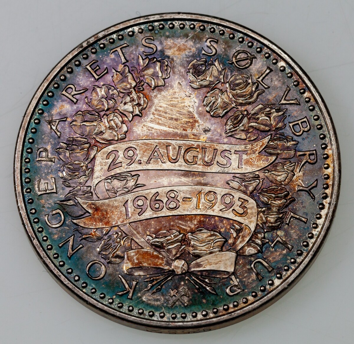 1993 King Harald Queen Sonja Norway 25th Anniversary Sterling Silver Medal AU