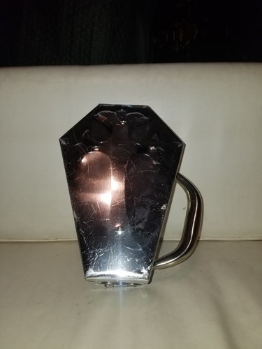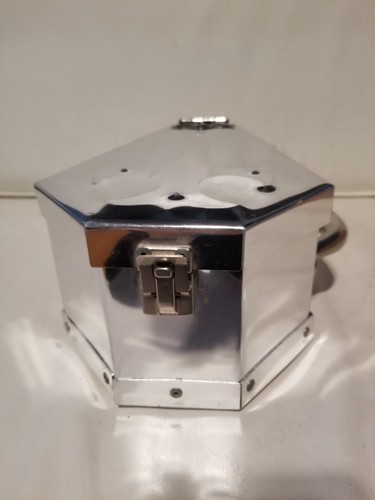 This is a metal aluminum coffin purse with embossed cross on top. Made in 1993, by Undertakings, Peter Erikson, NY. On the inside it is lined in red crushed velvet. It is approximately 8 1/2" long x 6" wide (at it's widest) and 4" deep. It has some wear, some minor scratches but over all in very good condition. It is a really unique, well crafted item. Can be used as a purse, a decorative item on a shelf or as a jewelry box. I use recycled materials for packaging whenever possible. Dstr. Please ask questions as all sales are final.