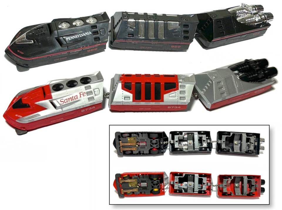 - 1993 TYCO TCR Slotless Slot Car 13ft RACE SET with 2 TURBO TRAINS Penn Santa Fe