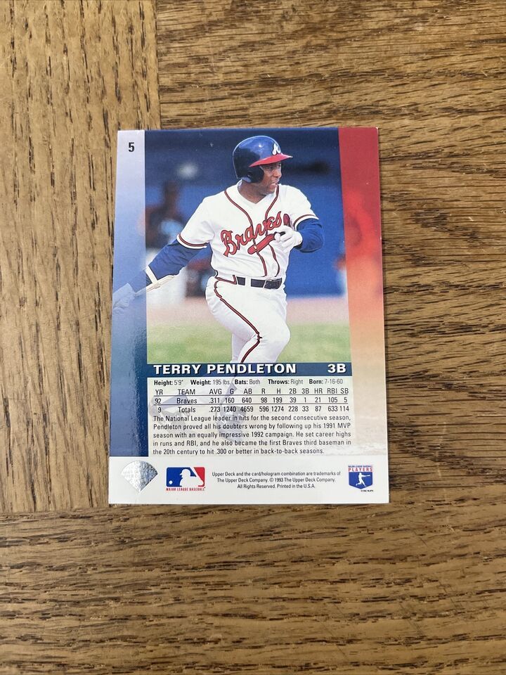 This 1993 UD Terry Pendleton card #5 is a must-have for any baseball fan. The card features the former Major League player in excellent condition, making it a great addition to any sports trading card collection. The card is from the 1993 season and is perfect for collectors looking to complete their set.