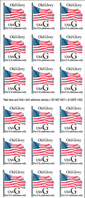 - 1994 32c Old Glory, Interim Regular Issue, "G" Pane of 18 Scott 2887 Mint VF NH