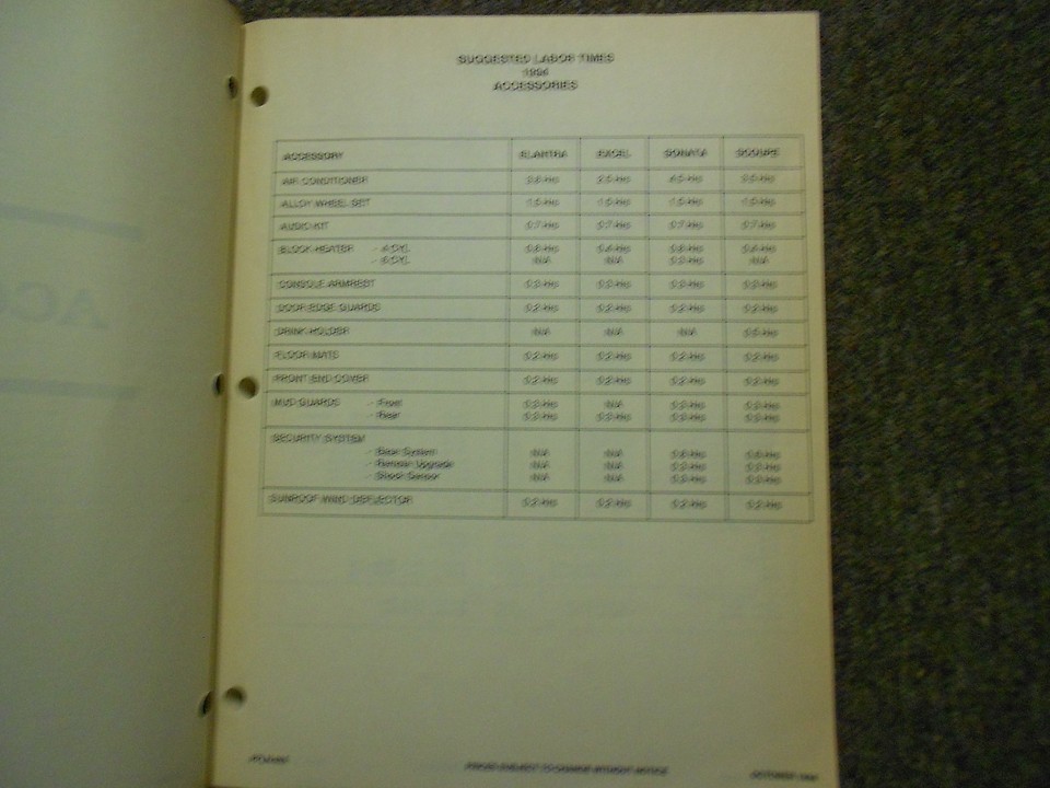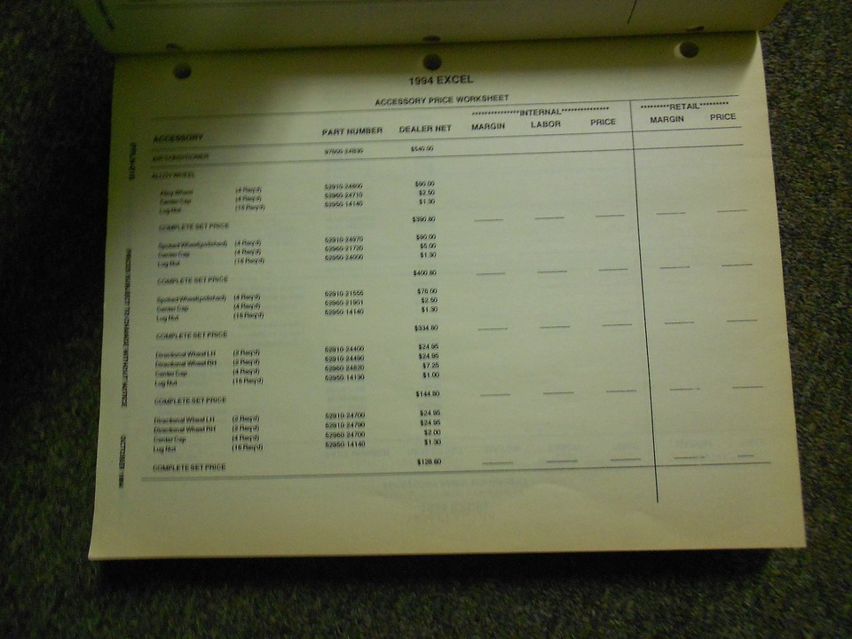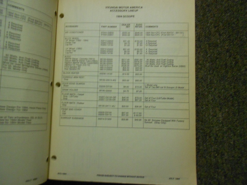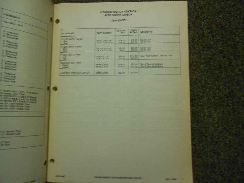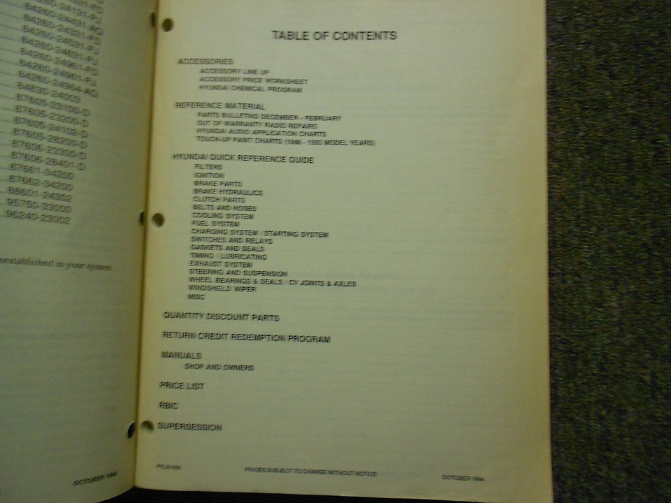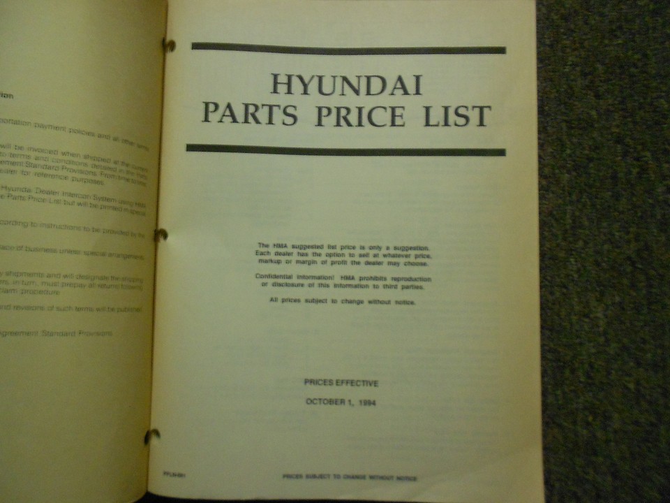 - 1994 HYUNDAI Parts Price List Manual OCT Elantra Excel FACTORY OEM BOOK 94