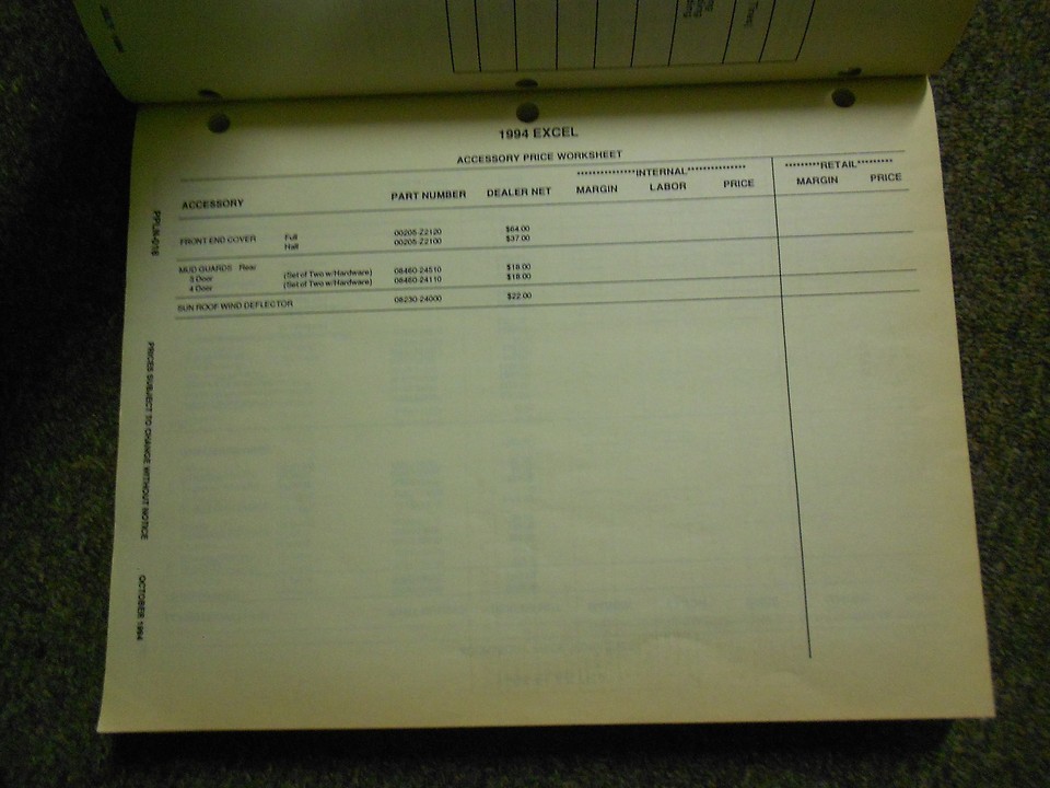 1994 HYUNDAI Parts Price List Manual OCT Elantra Excel FACTORY OEM BOOK 94