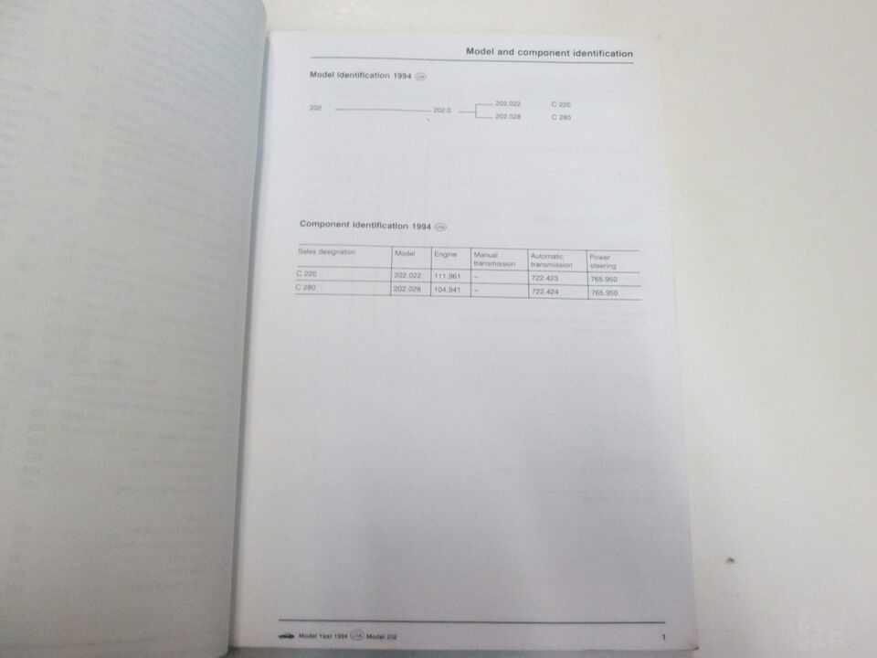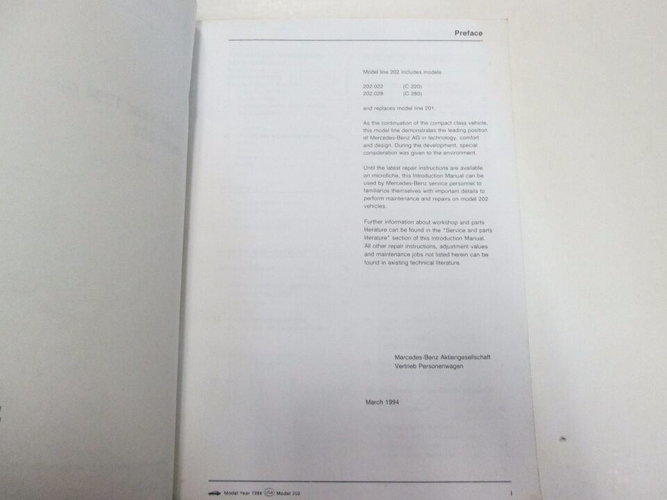 - 1994 MERCEDES BENZ Model 202 Intro into Service Manual WORN STAINED FACTORY OEM