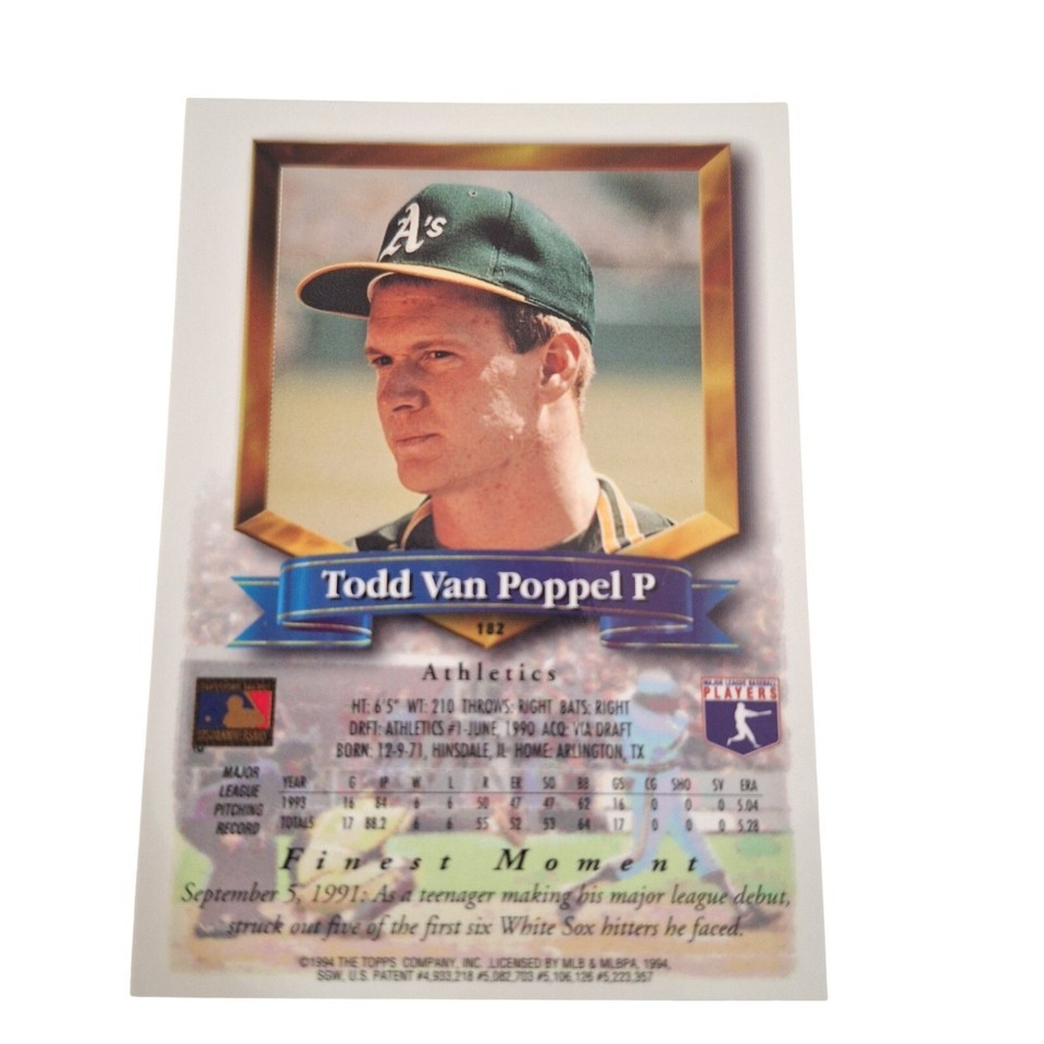 - 1994 Topps Finest Todd Van Poppel #182 Oakland Athletics MLB Baseball Card
