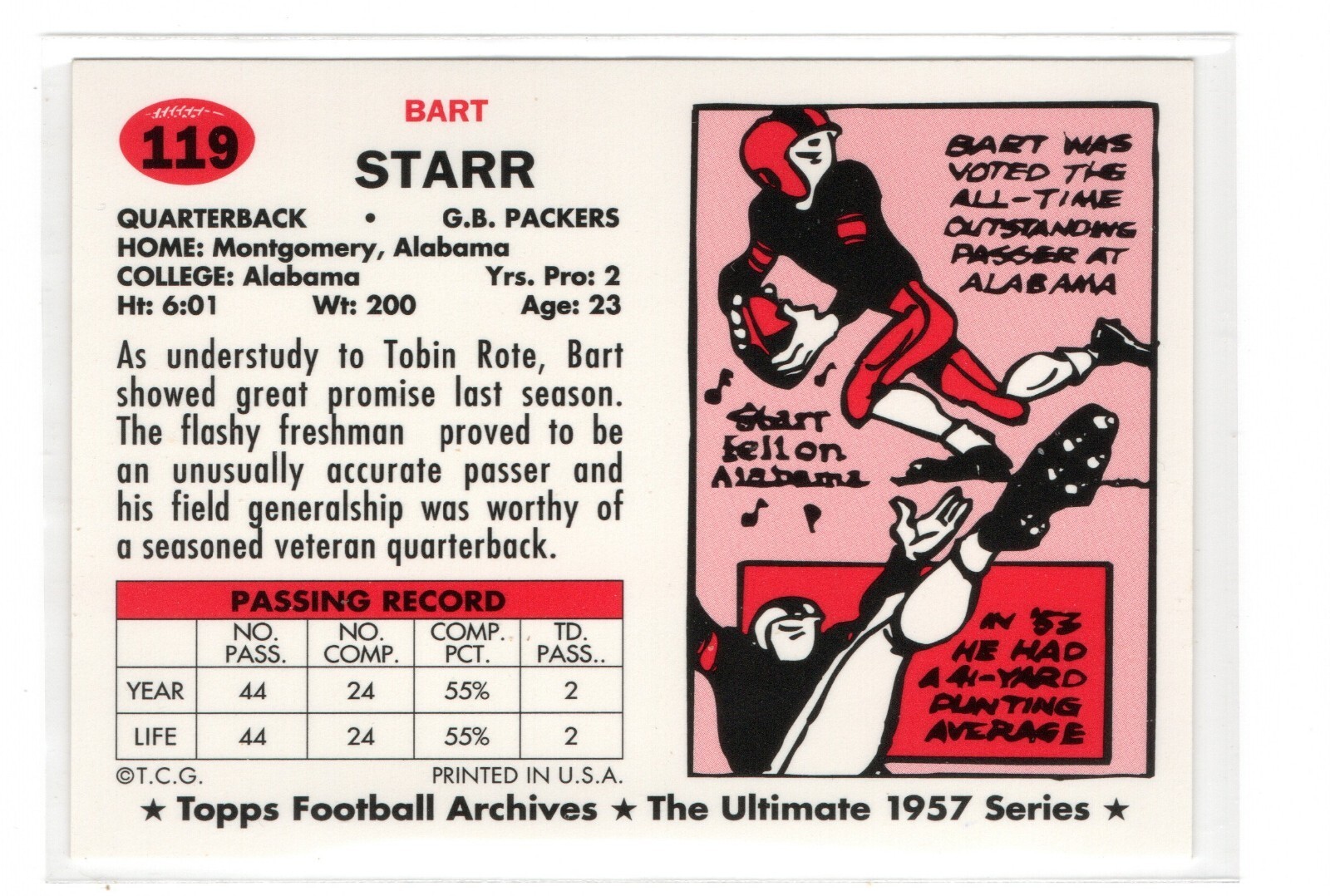 - 1994 Topps Football Archives 1957 Series Bart Starr #119 Green Bay Packers - NM!