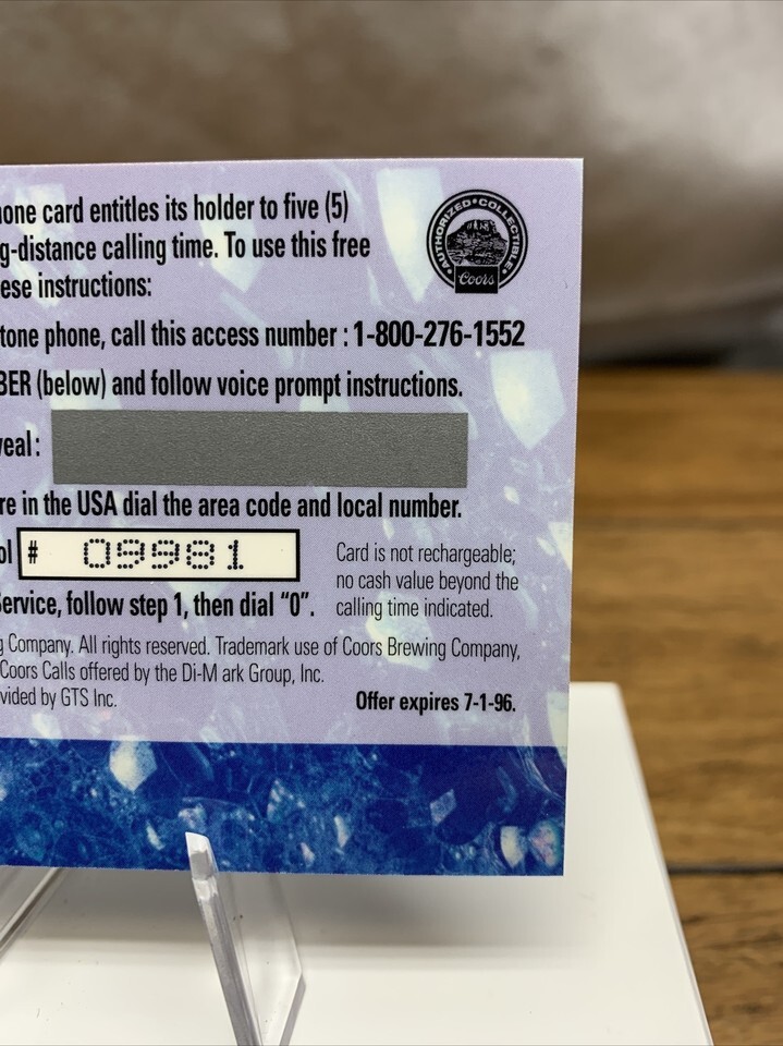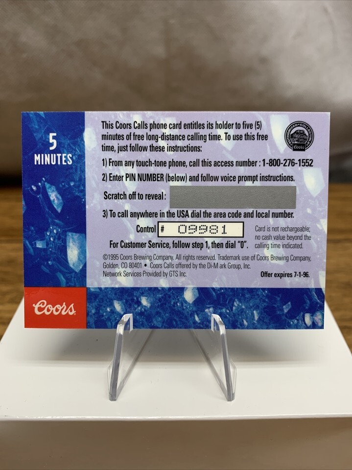 - 1995 Coors Calls five minutes Waterfall phone card Coors Brewing CV JD