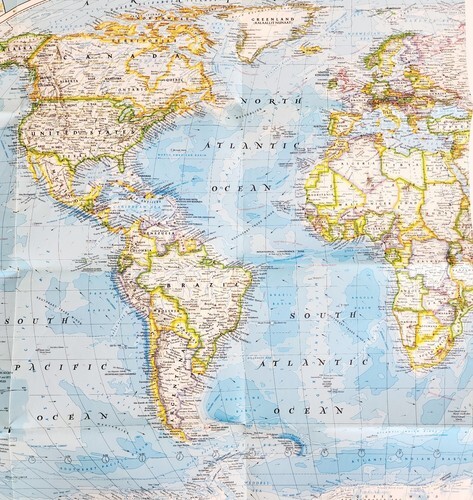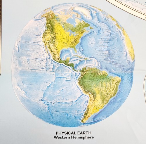 - 1995 World Map Political Physical Double Sided National Geographic 29 x 42" E89E