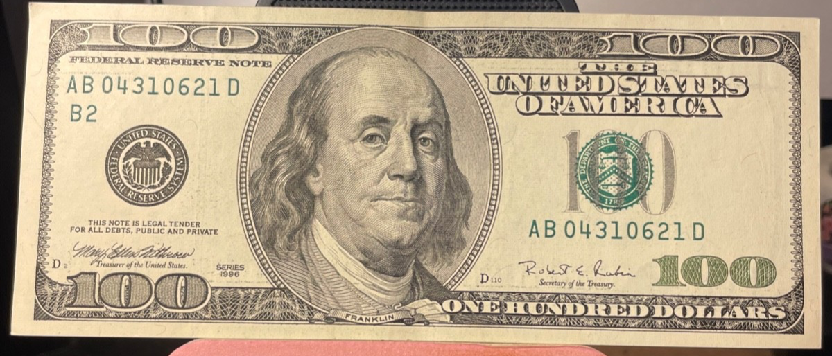 The product is a circulated $100 Federal Reserve Note from 1996 featuring a low serial number AB 04310621 D This banknote was sourced from the United States and is uncertified. With a unique design known as the "Big Head Bill," this note holds historical significance as a collectible piece from the United States currency. Its rarity and unique characteristics make it a sought-after item for collectors and enthusiasts of paper money.